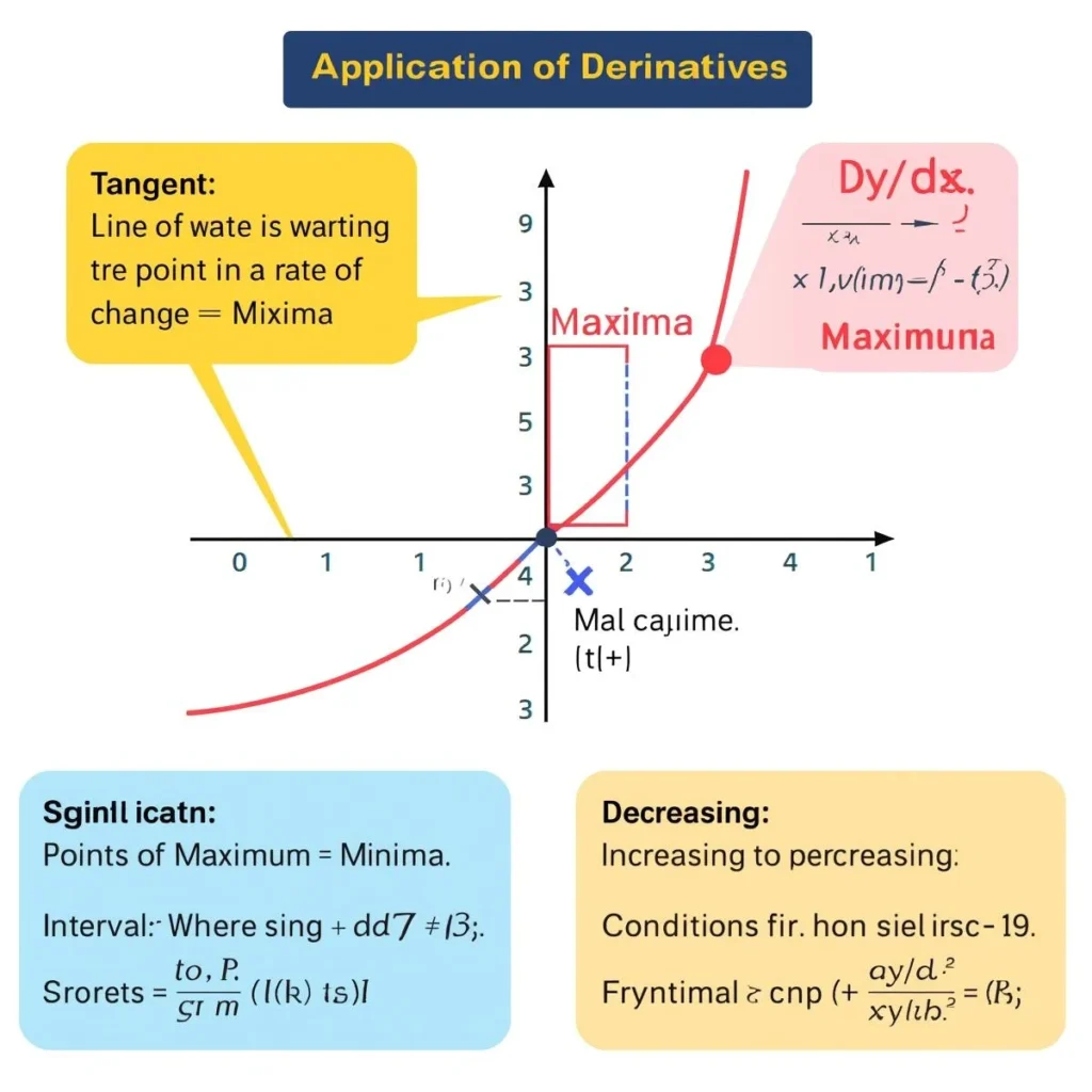 The application of derivatives refers to the use of derivatives to solve various types of real-life and mathematical problems, such as finding the rate of change, maxima and minima, increasing and decreasing functions, tangents and normals, and approximations.