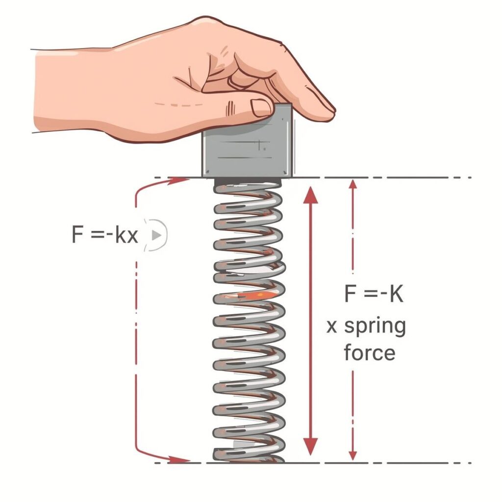 Spring | Restoring force in spring | F = -kx | Stretched spring |