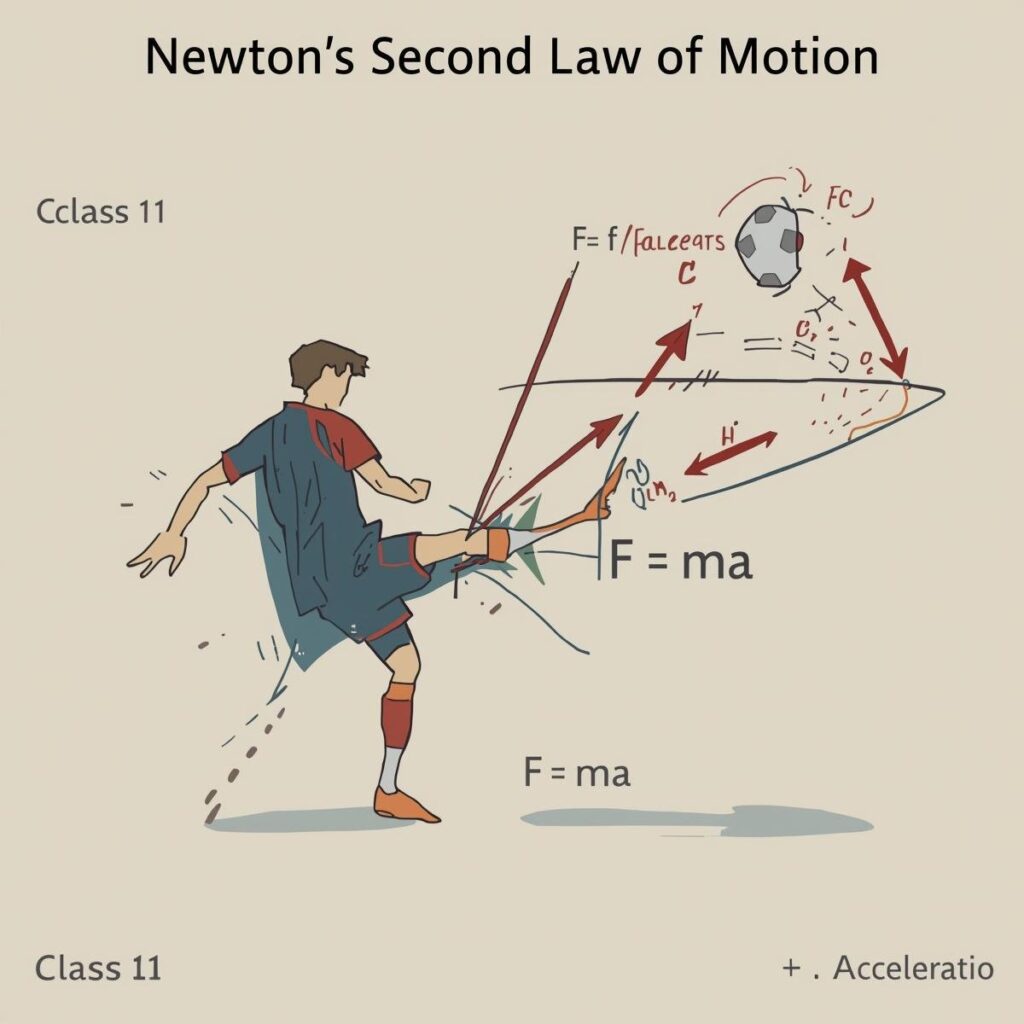 Newton’s Second Law of Motion states that the rate of change of momentum of an object is directly proportional to the applied external force and takes place in the direction of the force. In simple terms, the acceleration of an object depends on the net force acting upon it and the mass of the object.